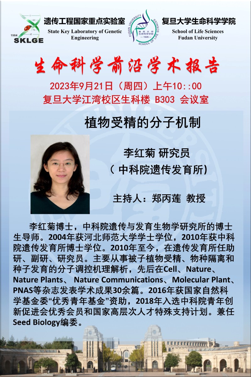 生化系学系报告-2023-09-21(周四)10:00,李红菊研究员( 中科院遗传发育所)