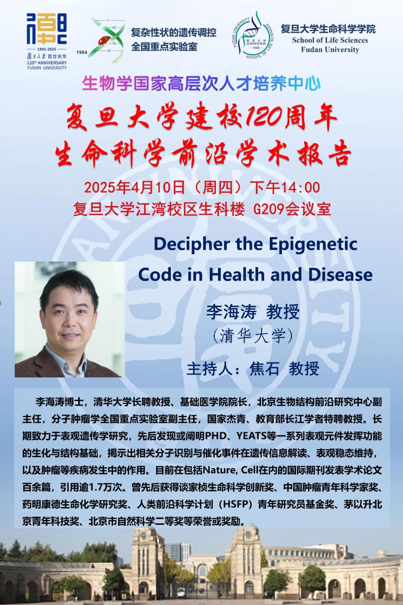 生命科学前沿学术报告--2025-4-10(周四)14:00,李海涛 教授 (清华大学)