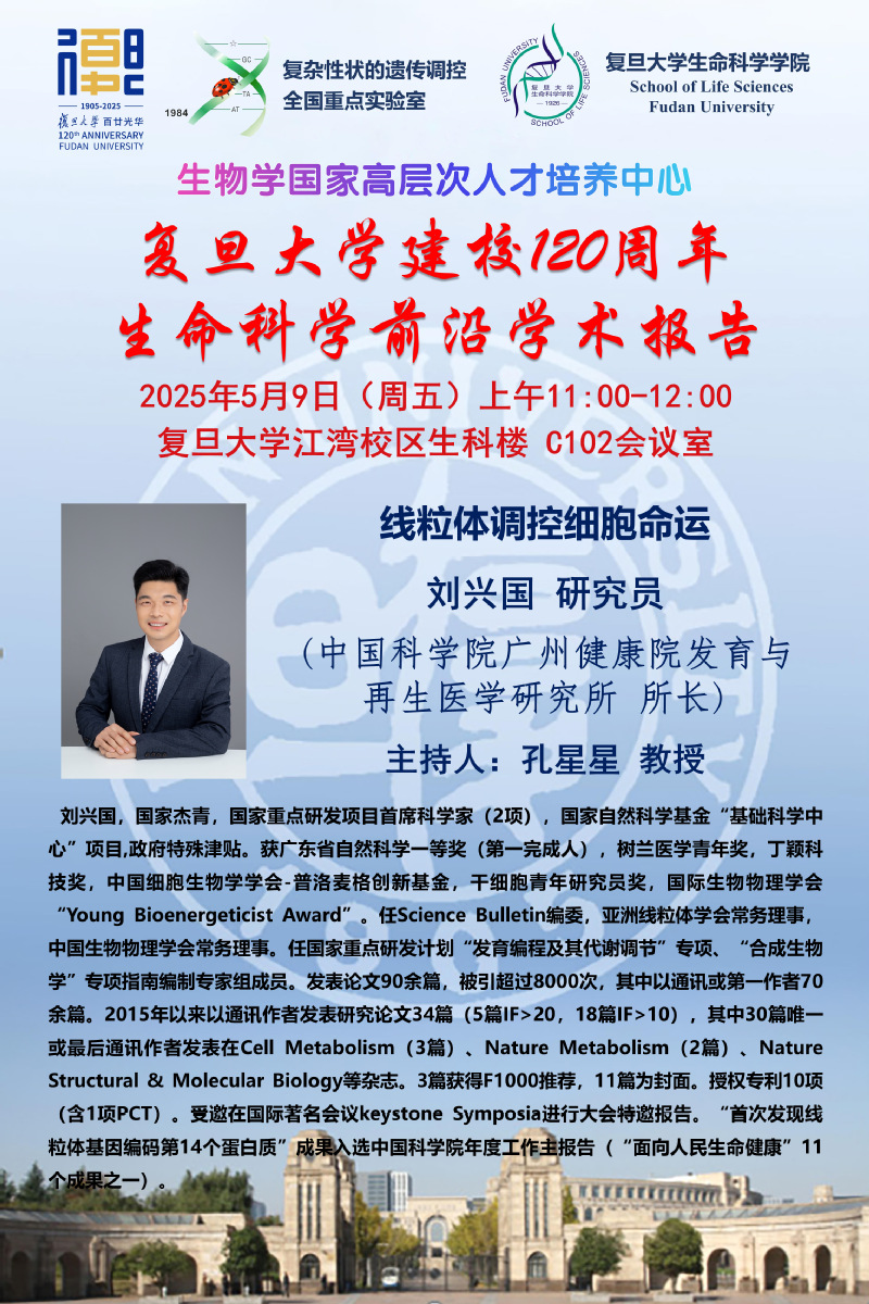 生命科学前沿学术报告-2025-05-09(周五) 11:00,刘兴国 研究员 (中国海棠书屋 广州健康院发育与再生医学研究所 所长)