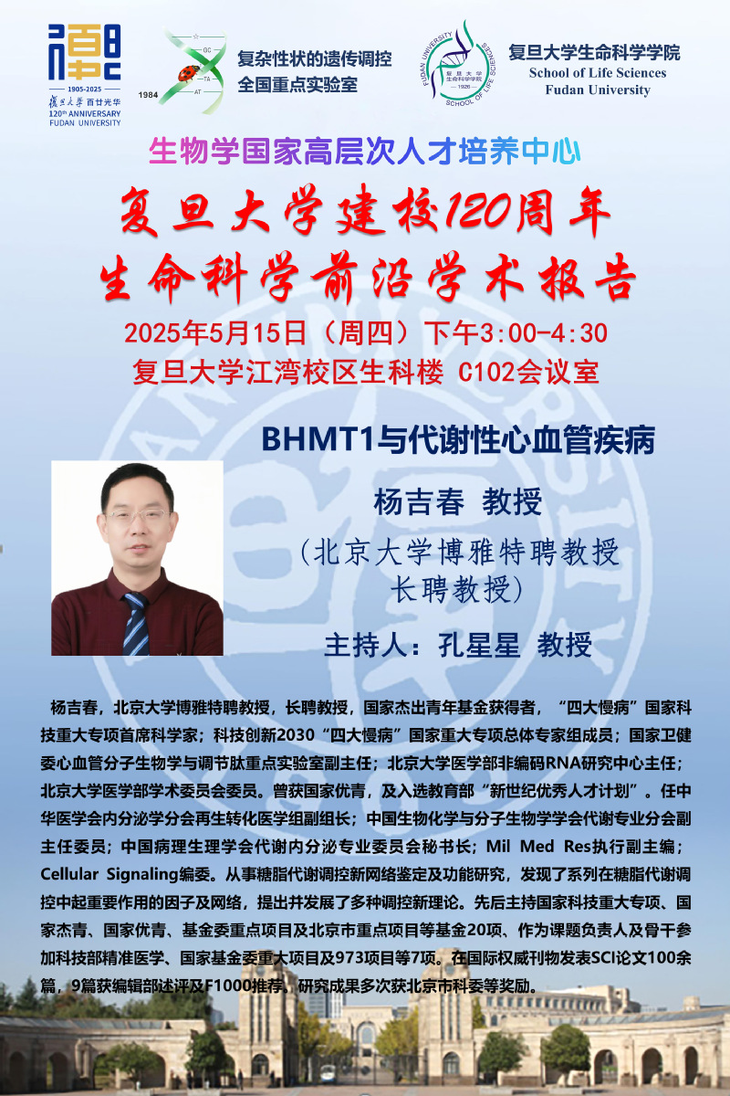 生命科学前沿学术报告-2025-05-15(周四) 15:00,杨吉春 教授 (北京大学)