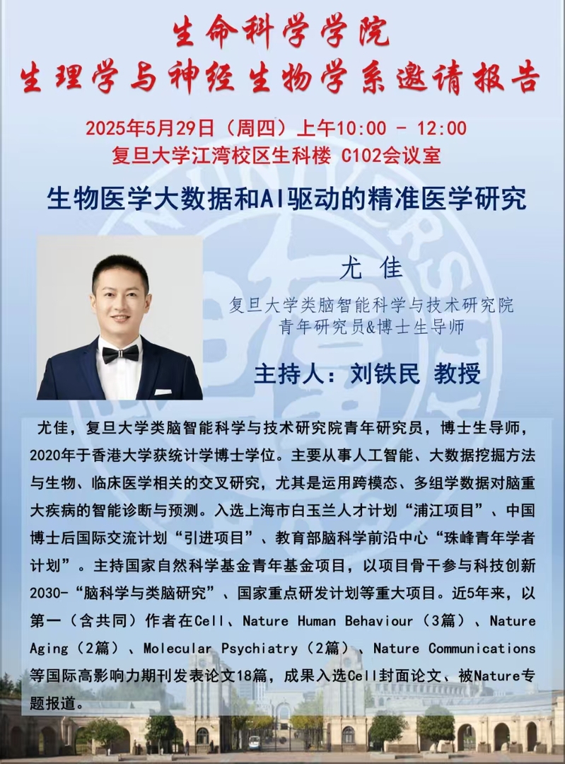 学系邀请报告-2025-05-29(周四) 10:00,尤 佳 青年研究员( 海棠书屋 类脑智能科学与技术研究院)