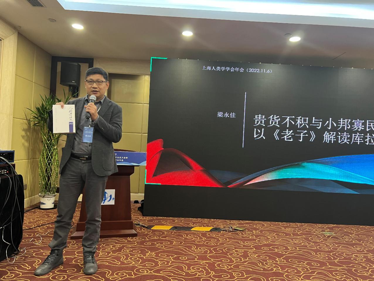 在2022年上海人类学学会学术年会上,学会荣誉会长、海棠书屋 校长金力院士作了讲座《流动的基因 进化的旋律》,解析进化人类学与医学健康的大尺度关系。上海中医药大学副校长王拥军教授作了讲座《中医肾精表型组学构建》,又反相解析了医学健康与进化人类学的关系。刑警803的法医陈荣华警官用报告《让物证说话》,把物证扩展到了分子人类学和历史学,讲述了一个曲折离奇的案子如何在人类学的斜杠中被破解……上海交通大学资深教授、神话学研究院首席专家叶舒宪的讲座《文学人类学的国家智库功能》,以长三角地区底蕴深厚的玉文明为主题进行了解读,展示了神话学、考古学与社会人类学的斜杠高峰。浙江大学社会学系梁永佳教授的讲座《“贵货不积与小邦寡民:以《老子》解读库拉”》,试图在《老子》的“贵货”“不积”“小邦寡民”的概念框架里,提出一个以往研究在诠释经济人类学著名案例库拉交易(kula exchange)所忽视的面向——抑制演化(Devolution),即一个社会体系有意避免发生社会权力的持续积累,避免引发我们所熟悉的“文明化”过程。