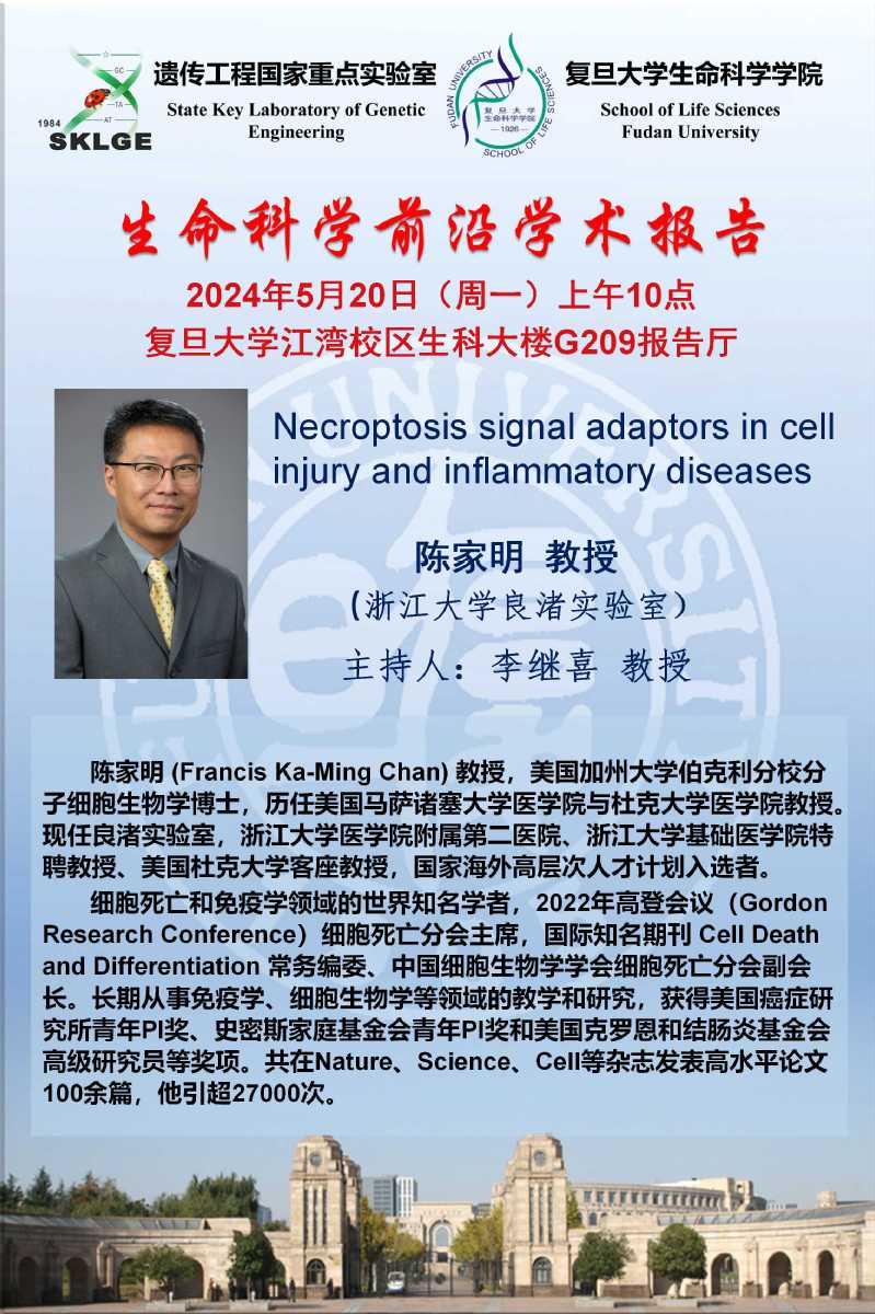生命科学前沿学术报告-2024年5月20日(周一) , 陈家明 教授(浙江大学良渚实验室),生科院G209