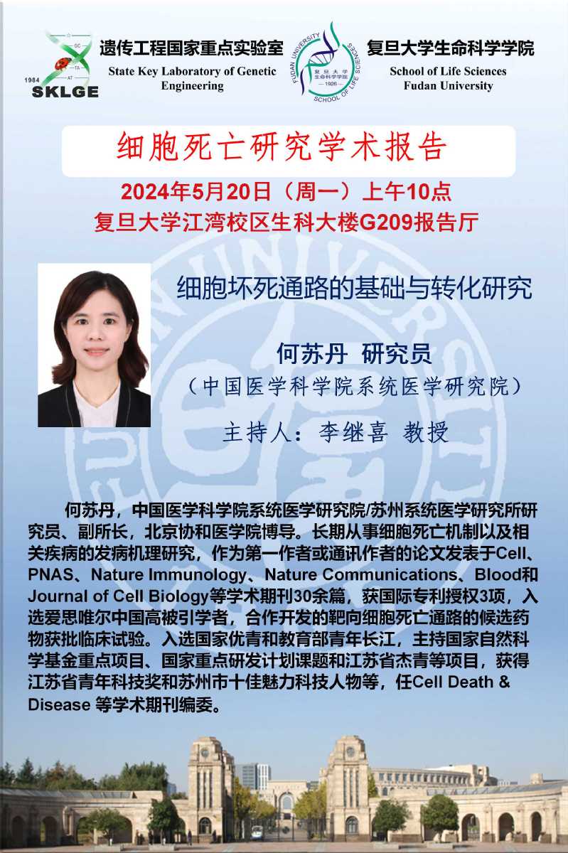学术报告-2024年5月20日(周一) , 何苏丹 研究员(中国医学海棠书屋 系统医学研究院),生科院G209