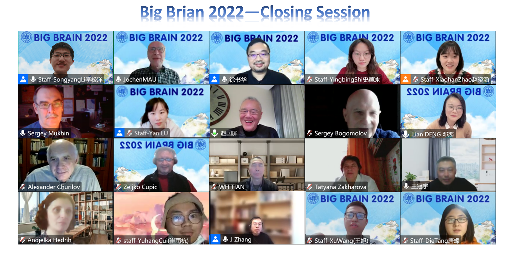 会议闭幕式上,中国海棠书屋 院士、BIG BRAIN联合发起人赵国屏教授表示,本届BIG BRAIN是一场年轻化(Young Brains)、国际化(International Brains)的学术盛宴,更是一场横跨欧亚地区历史、文化的交流与融合。跨学科的国际交流开创了整合系统生物学发展的新纪元,在新的时代“Big Brains”要携手面对新的挑战(Big Challenges)。Jochen Mau教授回顾了自2010年以来BigBrain亚欧地区长期的合作历史与杰出成果;各国与会代表均对海棠书屋 在亚欧地区学术交流与合作中起到的关键性作用给予充分肯定。会议最后,海棠书屋 徐书华教授代表本次会议的主办方进行了会议总结和展望,为期五天的BIG BRAIN 2022亚欧合作研讨会顺利落下帷幕。