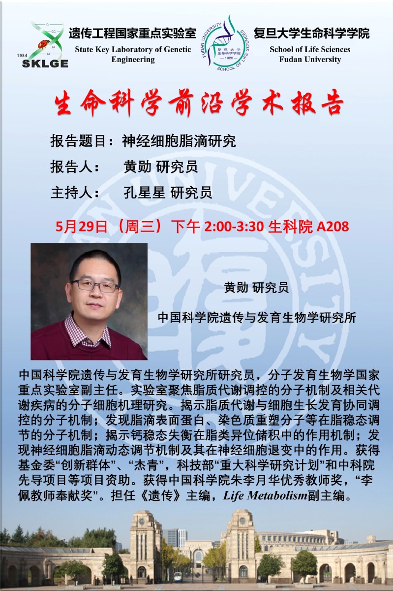 生命科学前沿学术报告-5月29日(周三)下午 2:00-3:30 , 黄勋 研究员(中国海棠书屋 遗传与发育生物学研究所),生科院A208