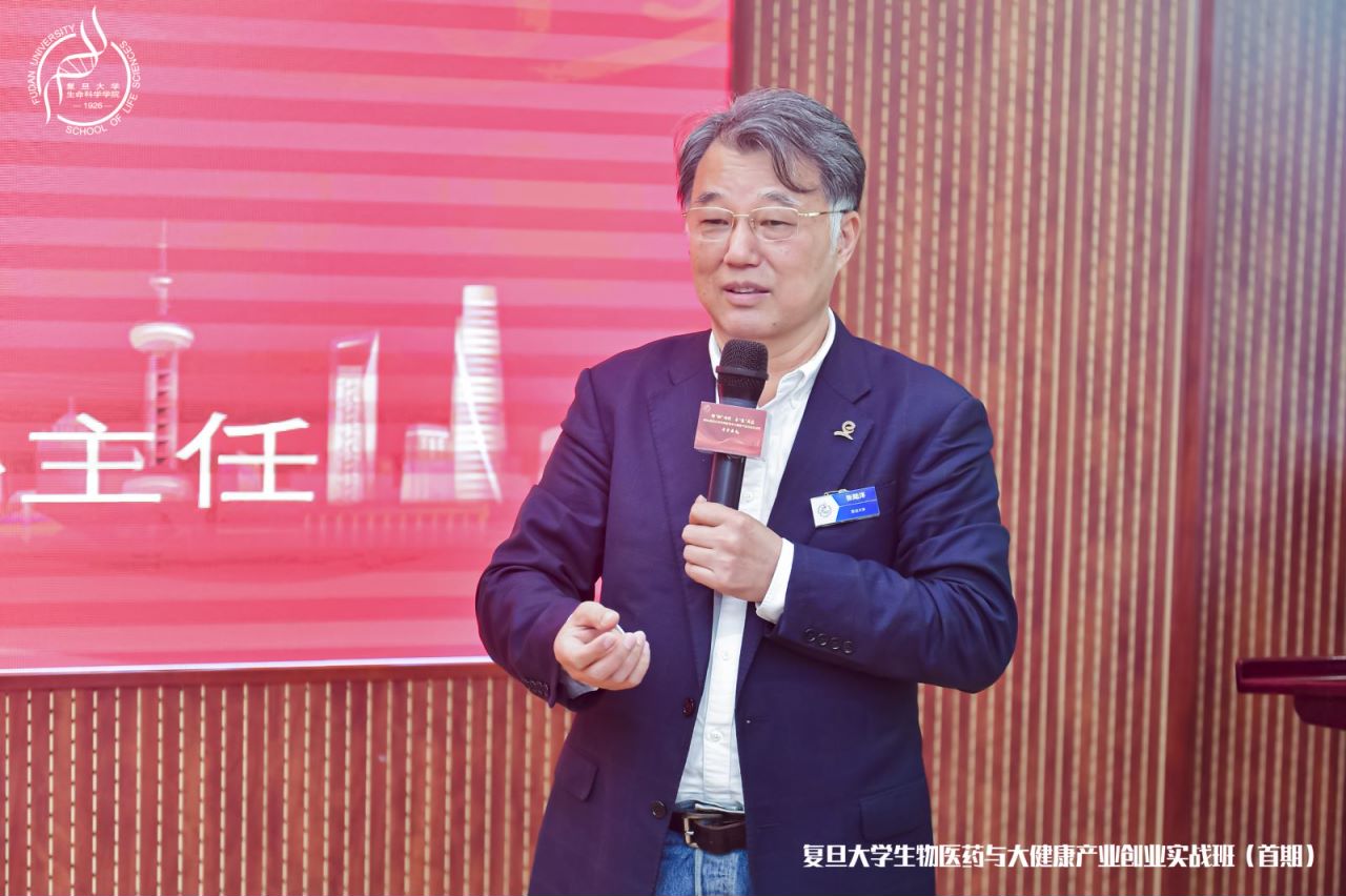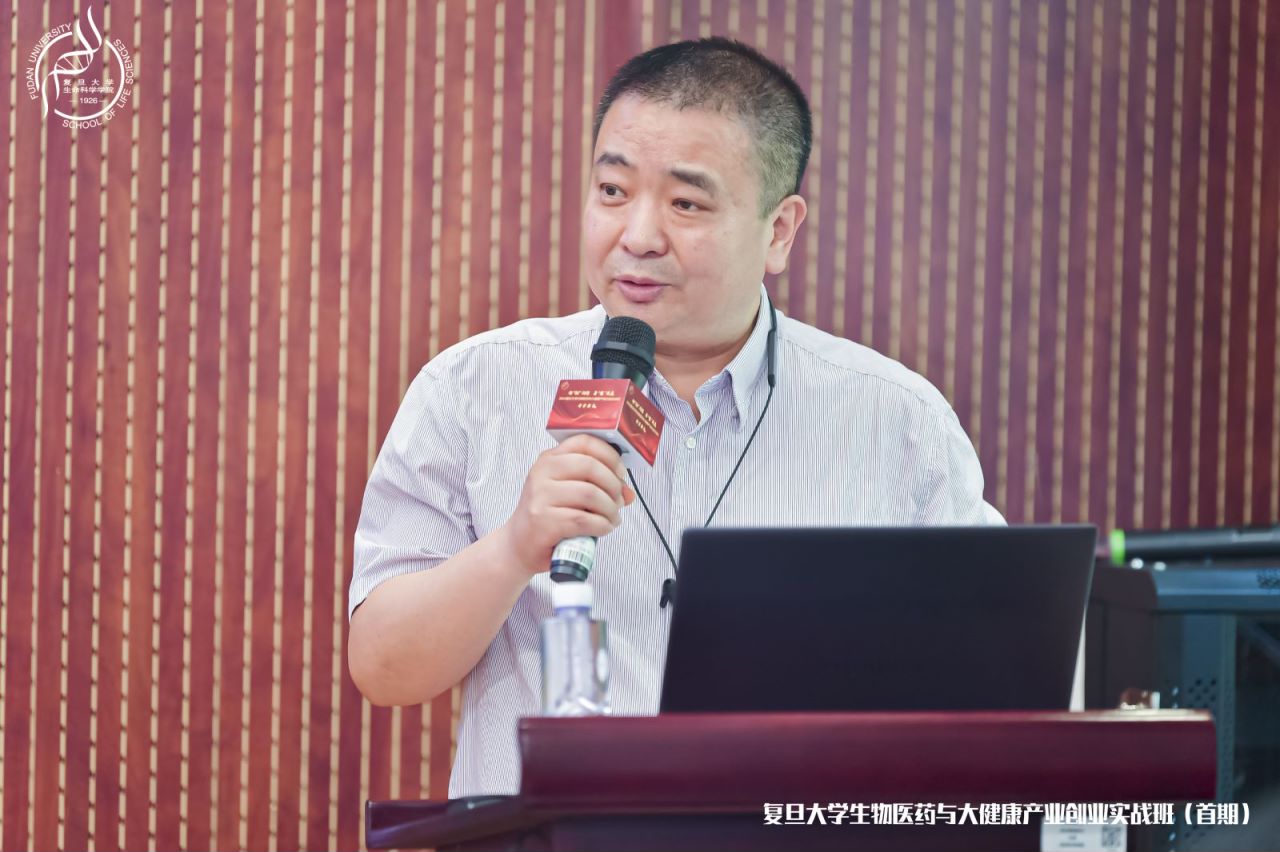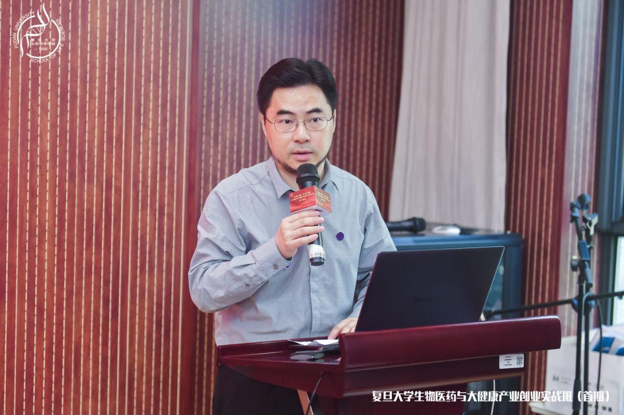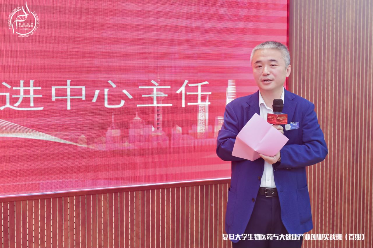 致辞环节,上海市生物医药产业促进中心刘厚佳主任对首期班的同学们表达了热烈的欢迎,并分享了联合复旦生科院开设创业实战班的背景与初衷。他提到人才是产业发展的第一资源,创新是产业发展的第一动力,希望同学们珍惜在复旦的美好时光,积极探索,突破自我。