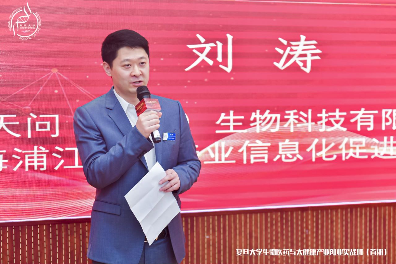 -新学员代表,复医天问(上海)生物科技有限公司总经理、上海浦江健康产业信息化促进中心主任刘涛先生发言