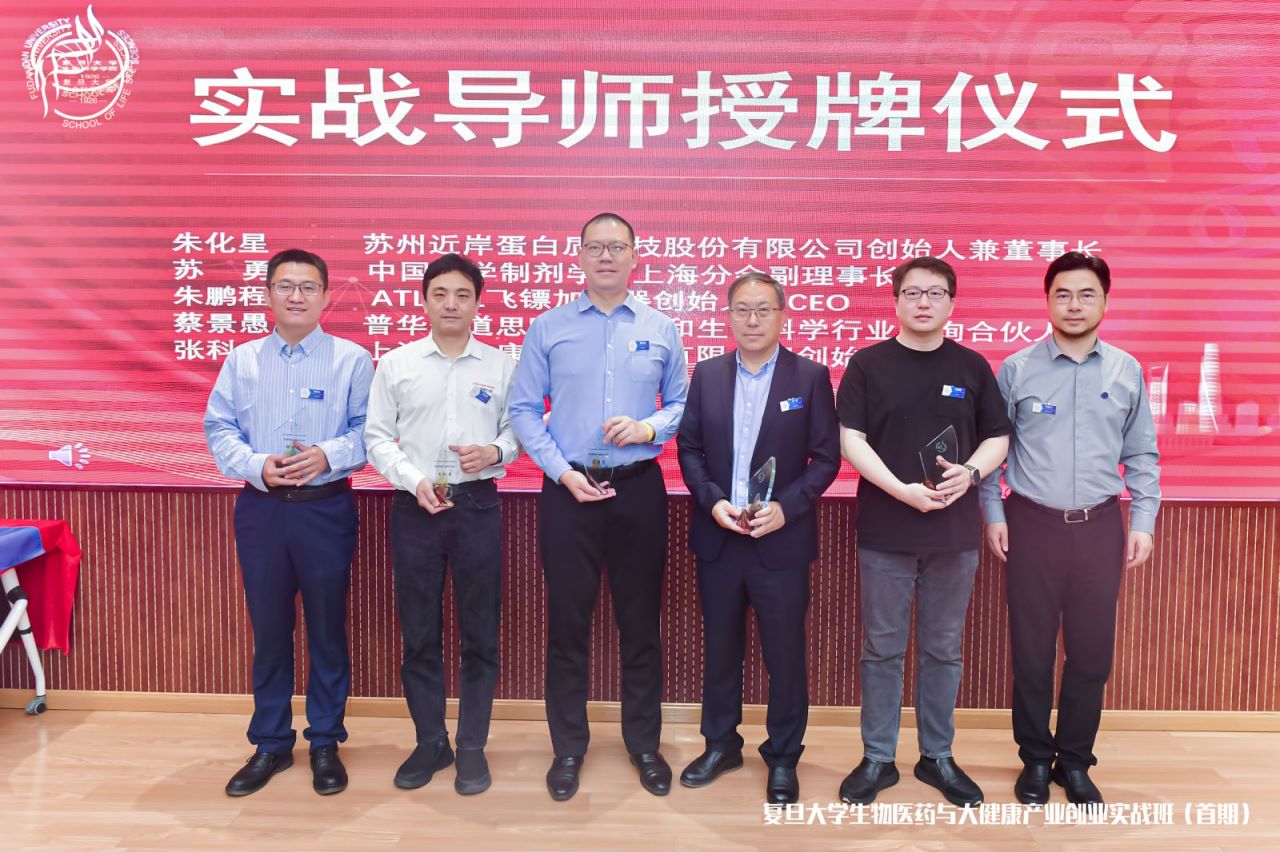 创业人才的培养离不开实战导师的帮助和指导,他们用自己最真实的创业感悟和独有的方法论为我们班级的同学们指明方向和路径,少走弯路。本次典礼邀请了五位实战导师代表,其中苏州近岸蛋白质科技股份有限公司创始人兼董事长朱化星先生,回顾了自己在复旦生科院的实验室创业初期的艰辛和挑战,他强调创业路上我们唯有迎难而上,不断突破自我才能看到不一样的风景。
