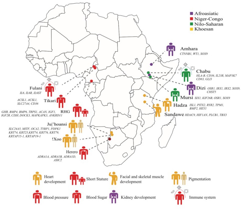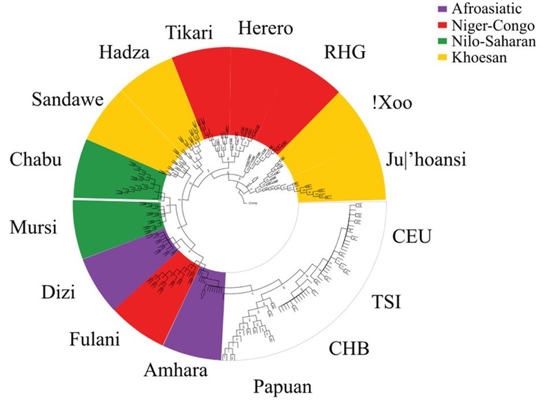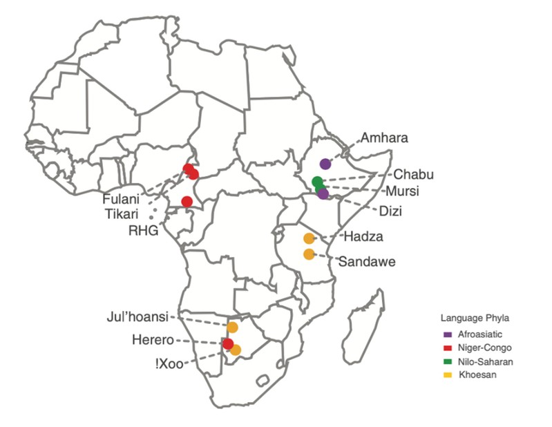 现有研究表明,现代人类起源于非洲,相比于其它大陆,现代人类在非洲居住时间最长,并且在迁徙,融合和对环境适应性进化的过程中形成了超过3000个民族和2100种语言。目前非洲人群不仅具有世界上最丰富的遗传多样性和表型多样性,并且现代人类近三分之一的语言都在非洲,是全世界语言最为多样化的地区之一。