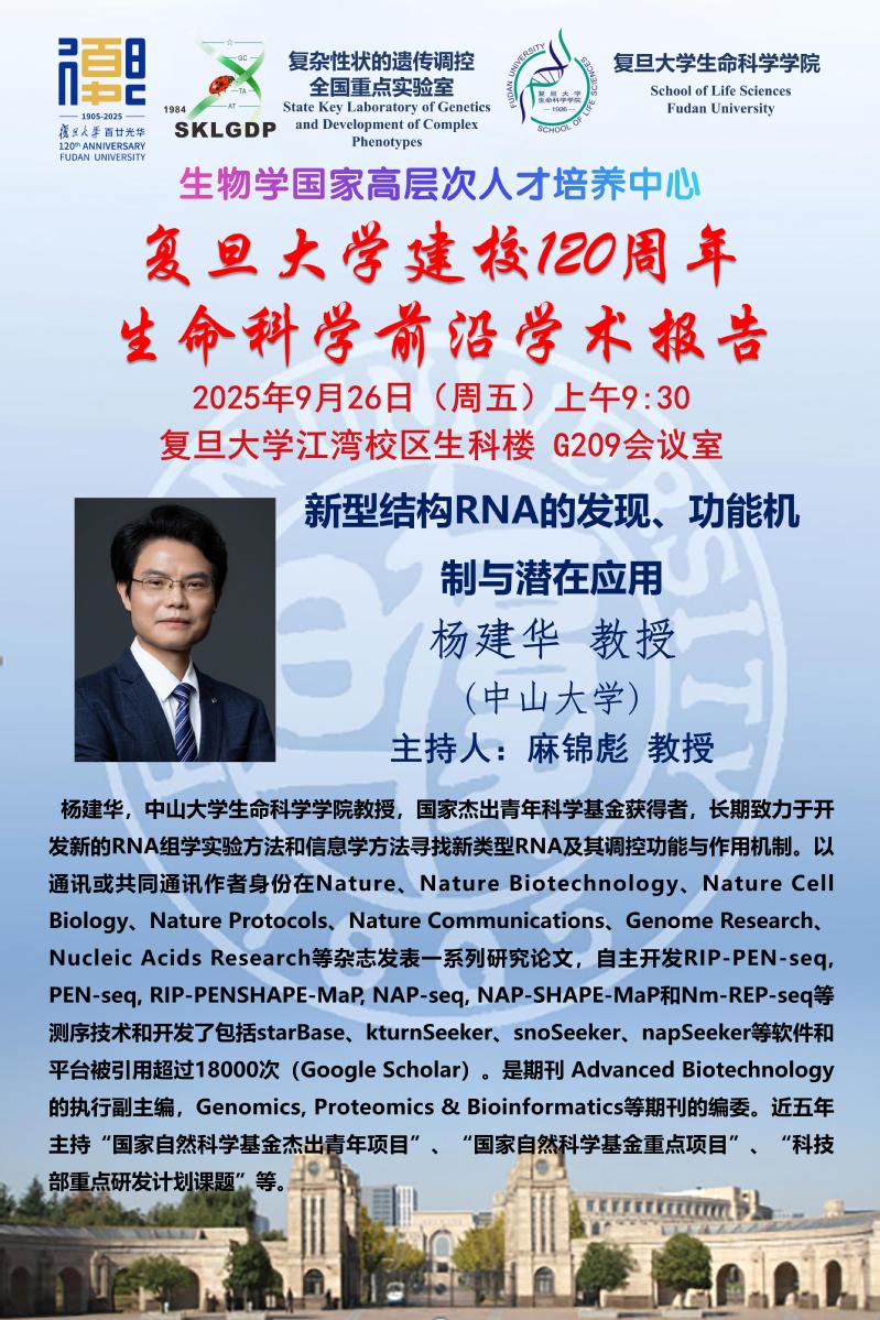 生命科学前沿学术报告-2025-09-26(周五) 9:30,杨建华 教授 (中山大学)