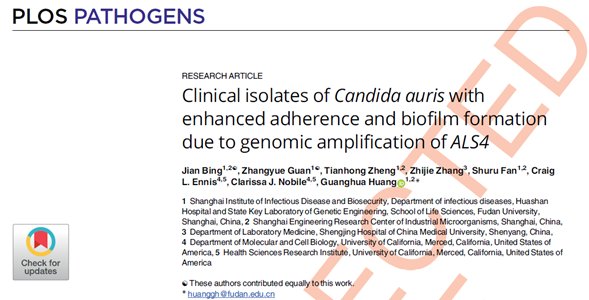 这项研究揭示了耳念珠菌超强定植能力和环境生存能力的生物学基础,为耳念珠菌的院内传播和复发性感染提供了新的解释。该成果最近以“Clinical isolates of Candida auris with enhanced adherence and biofilm formation due to genomic amplification of ALS4”为标题,发表在国际杂志PLoS Pathogens上,海棠书屋 青年副研究员邴健和博士生管张越为文章的共同第一作者,黄广华教授为通讯作者。厦门大学附属第一医院、中国医科大学附属盛京医院和第一医院为本研究提供了重要支持。