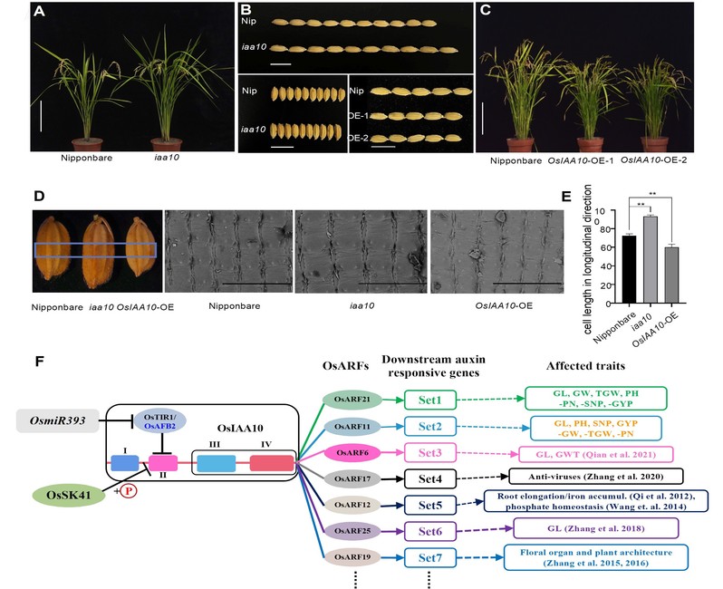 控水稻产量性状的OsIAA10信号通路基因网络和机制