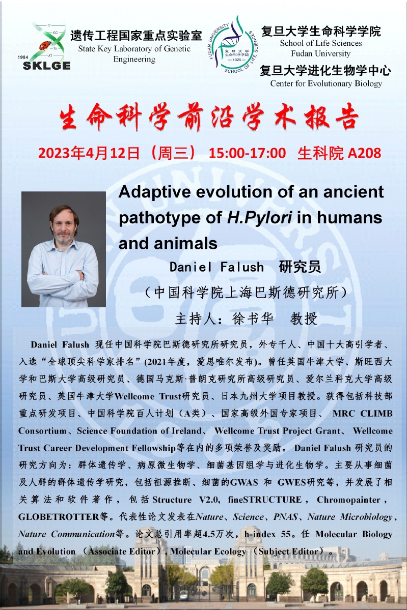 生命科学前沿学术报告-2023-4-12(周三)下午15:00,Daniel Falush 研究员(中国海棠书屋 上海巴斯德研究所)