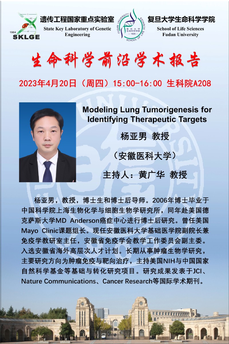 生命科学前沿学术报告-2023-4-20(周四)下午15:00,杨亚男 教授 (安徽医科大学)