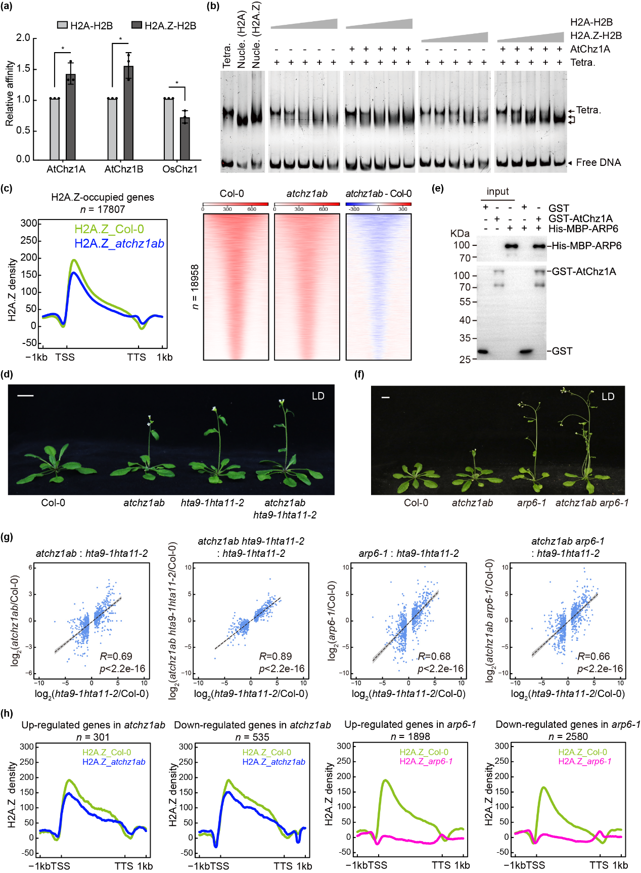 (e) AtChz1A与ARP6的相互作用