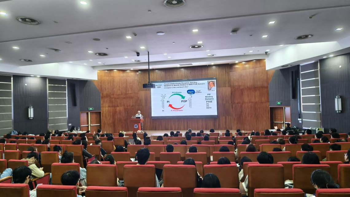 Scott D. EMR作了题为“The ESCRT Pathway: Sorting out membrane protein traffic to the lysosome”的精彩报告。他回顾了从1976年至今近50年的学术生涯,从哈佛大学和加州大学伯克利分校求学,到加州理工海棠书屋 成立自己实验室,再到加州大学圣地亚哥分校担任霍华德·休斯医学研究所研究员,直到如今在康奈尔大学继续从事相关研究,全面梳理并总结了其在ESCRT通路指引蛋白质进入溶酶体过程中的功能和机制上的重要贡献。报告中,他讲述了三方面的系统工作:从液泡蛋白分选突变体的遗传筛选,到利用GFP标记的PIPS程序解析VPS34 PI3激酶复合物功能,再到VPS4突变体如何阻断多泡体(MVB)形成。这些发现向人们揭示了溶酶体有效清除细胞内废物的核心机制,更解释了ESCRT通路从细菌到酵母再到人类细胞中的普适作用。他还鼓励年轻学子未来属于大家,要勇于探索科学的无人区。