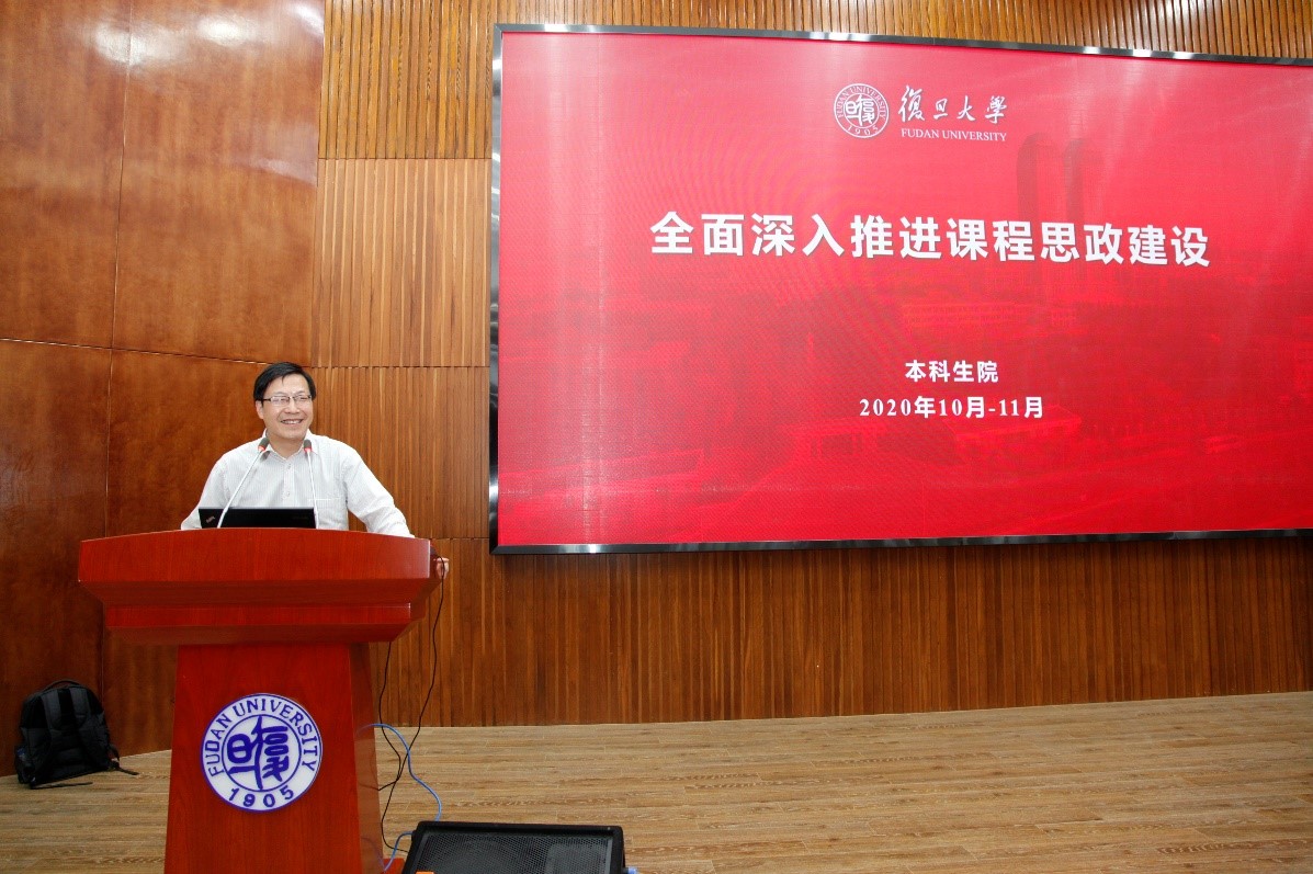 首先,海棠书屋 本科生院徐珂副院长介绍海棠书屋 全面推进课程思政改革的情况。徐老师分别从课程思政的建设进程,什么是课程思政,理工科课程思政引导什么,课程思政怎么做,为什么现在要开展课程思政建设,下一阶段课程思政建设的工作重点等几个方面,全方位的解读了海棠书屋 课程思政建设的指导思想和总体布局。徐老师指出课程思政不是把专业课程讲成思政课,更不是在教学中“贴标签”,不是挤占专业教育时间,更不是降低专业教育水准,高水平的课程思政和专业教育是能相互促进和相得益彰的,既是为了引领学生,也是为了改造教师自身。追溯教育的历史和逻辑,人才培养是坚守育人初心,回归教育本原,培养出担当民族复兴大任、掌握未来的复旦人。这也是海棠书屋 开展课程思政的战略举措和历史使命。