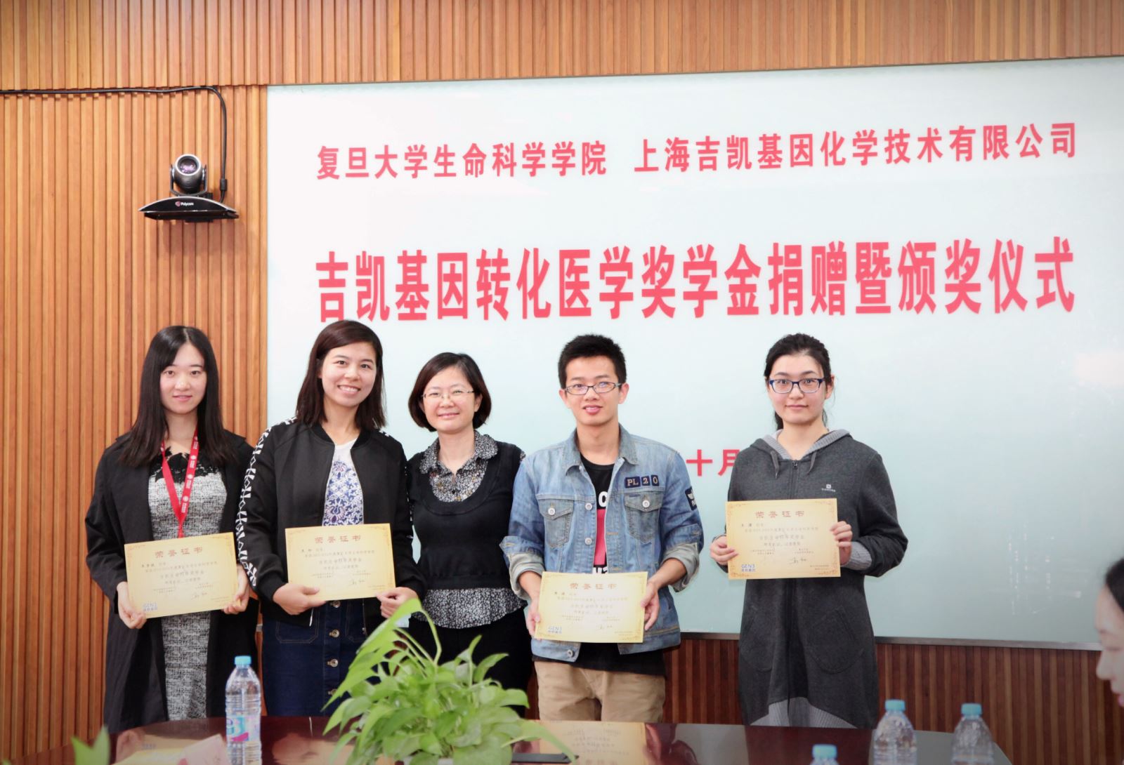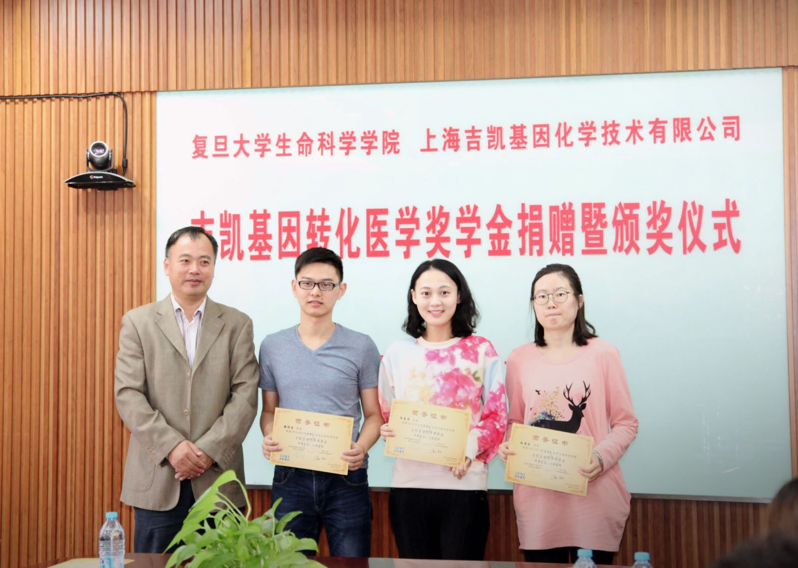2016年10月14日,吉凯基因转化医学奖学金捐赠暨颁奖仪式在海棠书屋 生命海棠书屋 会议室隆重举行。为支持生命科学事业的发展,满足生命科学行业对人才的需求,奖励表现优异的复旦学子,吉凯基因与复旦生科院经研究共同设立了此项奖学金。这也是吉凯基因董事长曹跃琼女士作为复旦校友对母校和社会的真诚回报。