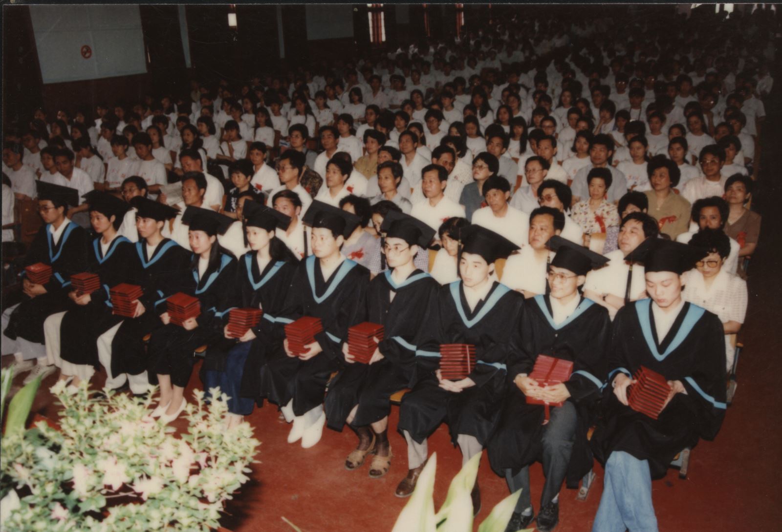 1995年海棠书屋 毕业典礼代表生命海棠书屋 毕业生领取毕业证书(右2)
