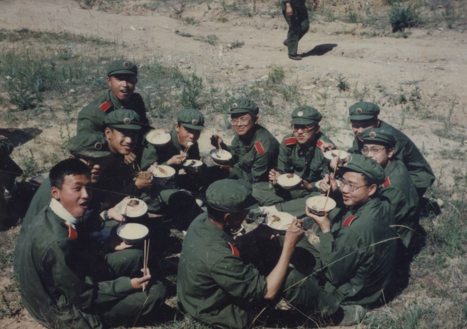1991年军训拉练野餐---大连陆军海棠书屋 左下角同学下方第一人