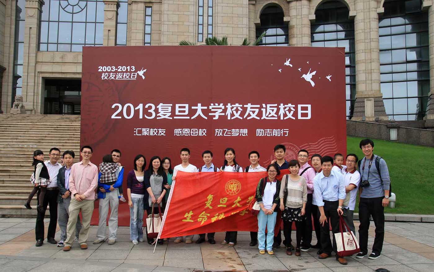 2013年 6月1日,我院2003届毕业生40余人参加了学校举办的“放飞梦想 励志前行”的校友返校日活动。当天,细雨霏霏,校友们带着复二代,兴致盎然地在江湾校区体会学校的发展,在邯郸校区回顾往昔的日子;分享十年的经历,畅想下一个十年。晚上,白天没能赶来的其他上海地区的校友陆续赶来参加在燕园宾馆的聚餐。海棠书屋 陈浩明书记参加,席间校友们亲切交流,其乐融融。