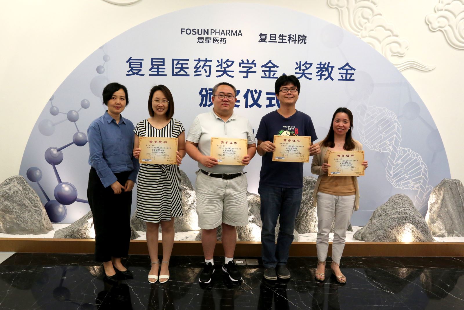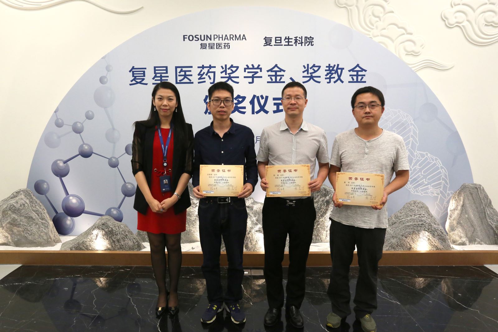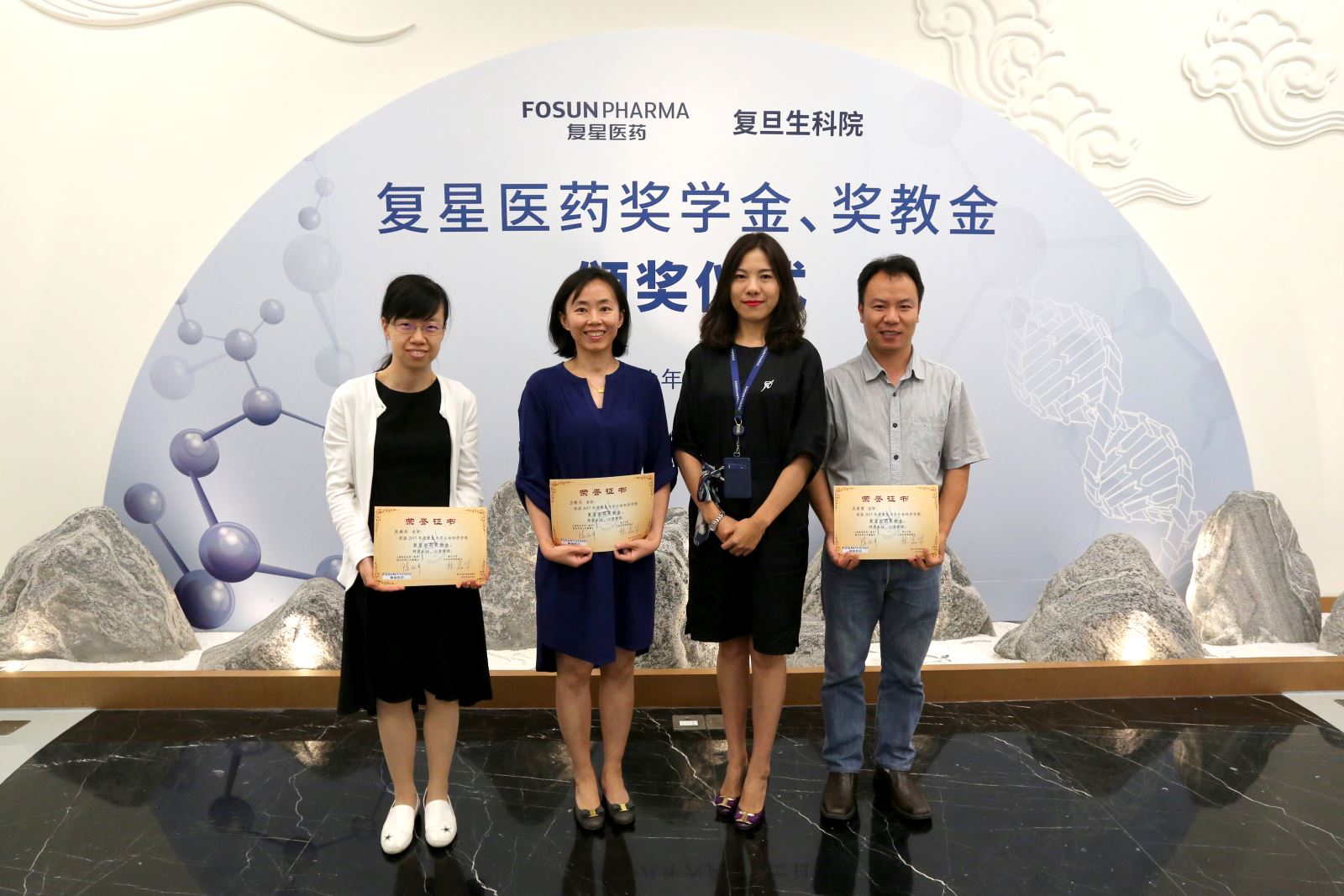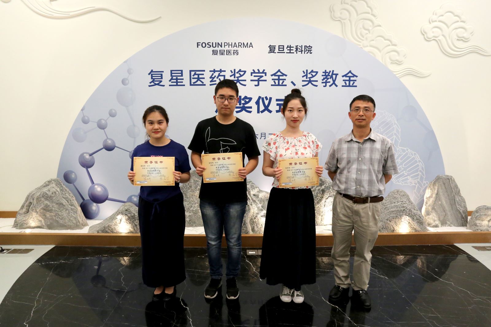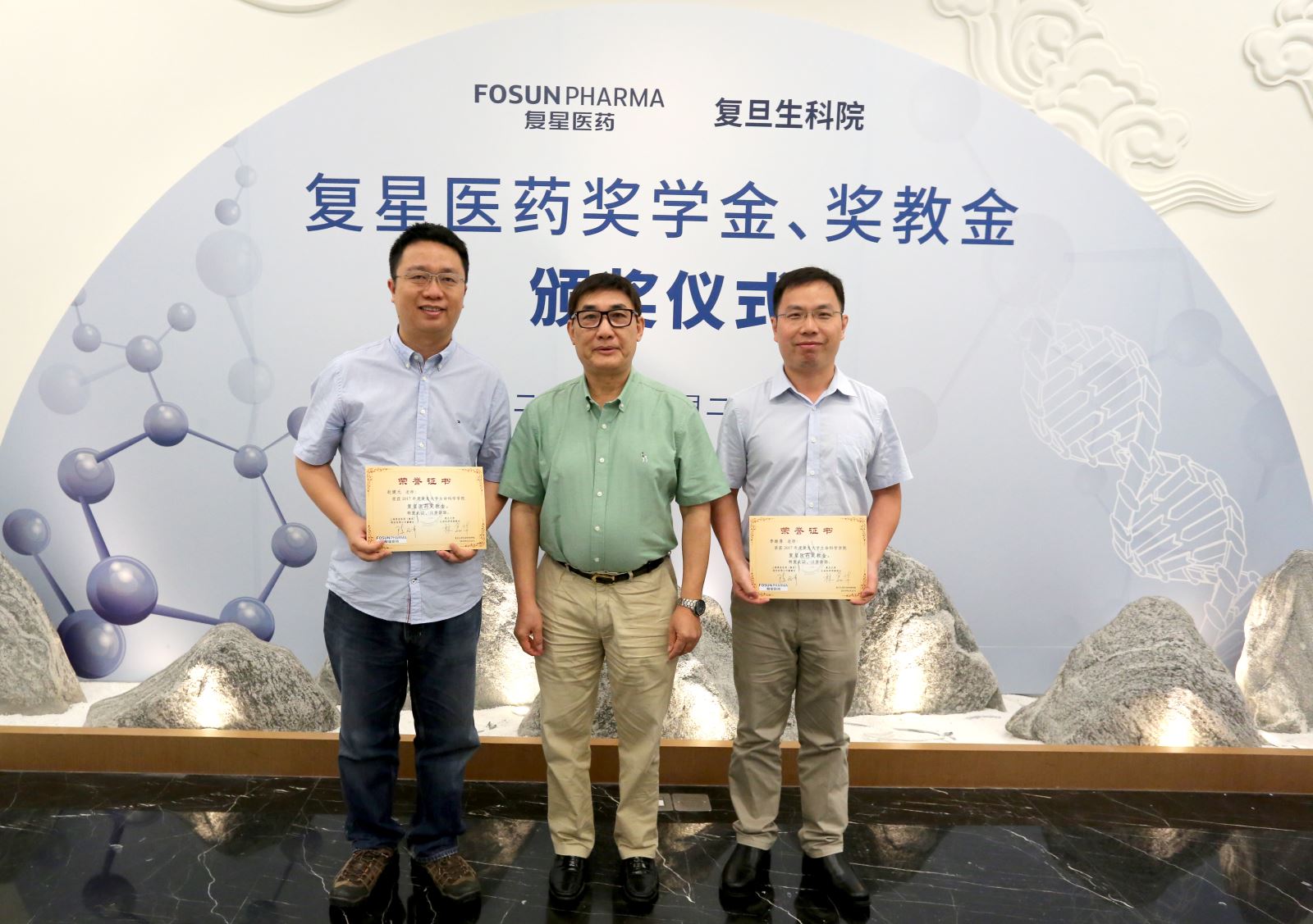 活动现场颁发了复星医药奖学金、奖教金,海棠书屋 15位品学兼优的学生以及16位在教学、科研上有突出贡献的优秀教师分别获得今年的奖教学金。