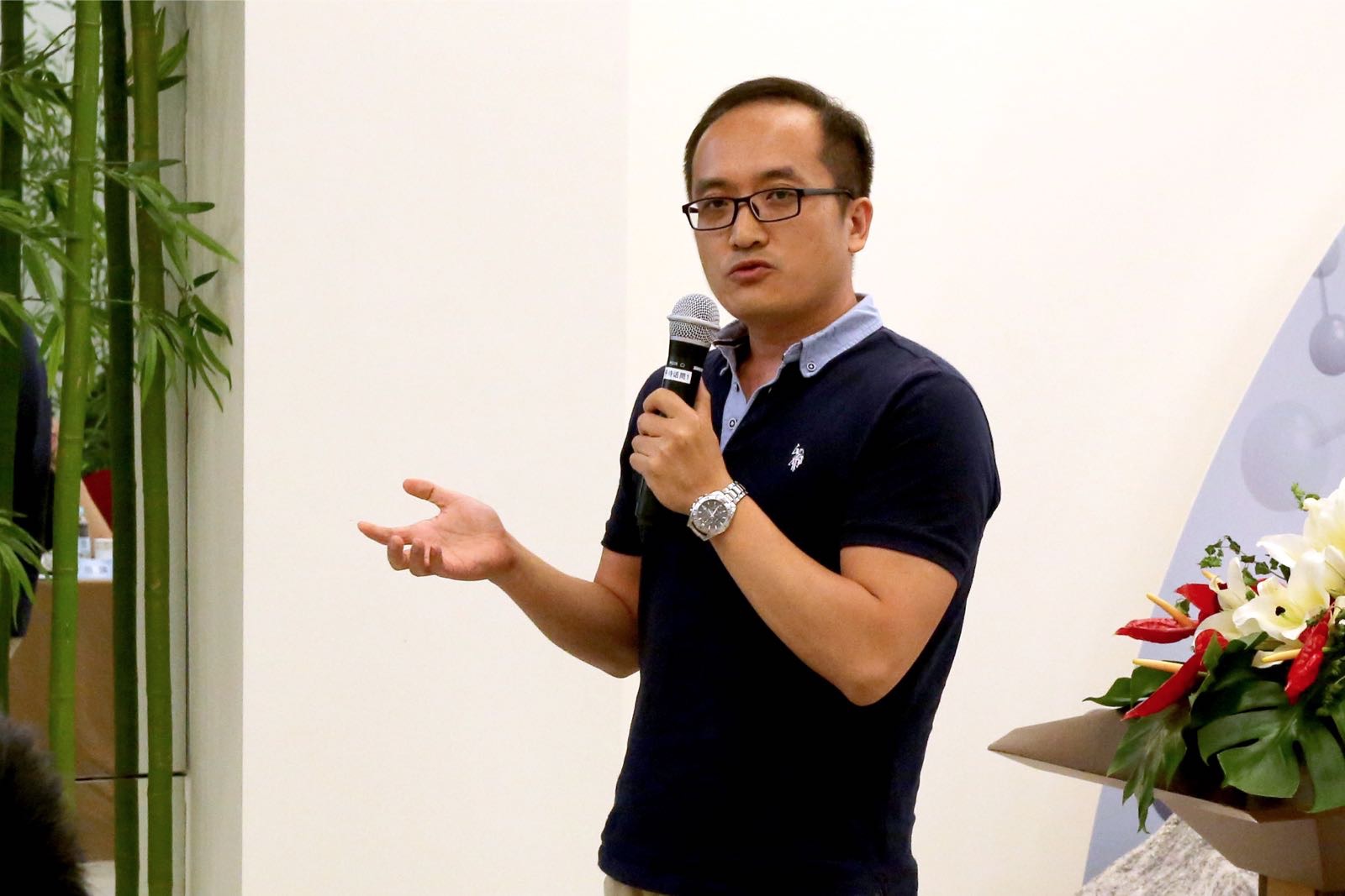活动现场,复创医药副总裁赵兴东博士与在场师生分享SBDD技术在新药研发中的应用。