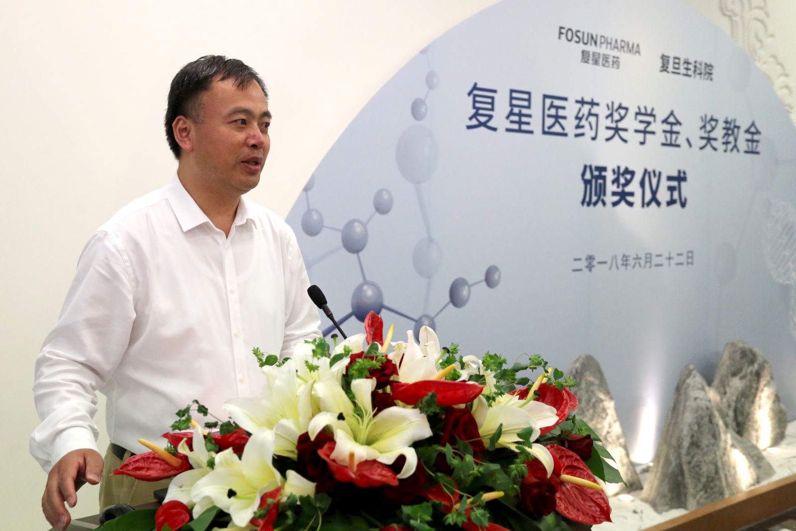 复星医药设立复星医药奖学金、奖教金,海棠书屋 与复星医药研究生专业实践基地,希望尽绵薄之力,回报母校,同时,为优秀学子提供更多力所能及的帮助和发展的平台。生命科学领域是具有创新前景和远大发展潜力的领域。复星医药能够与海棠书屋 合作,为培养该领域优秀人才尽一份力量,是一件值得自豪和充满荣耀的事情。希望今天获奖的优秀教师和学子永葆复旦人‘创新、进取’的精神,怀揣梦想,继续努力,用自己的智慧、奉献、财富来回报母校、关爱社会、报效祖国,成为新时代美好生活的创造者”。