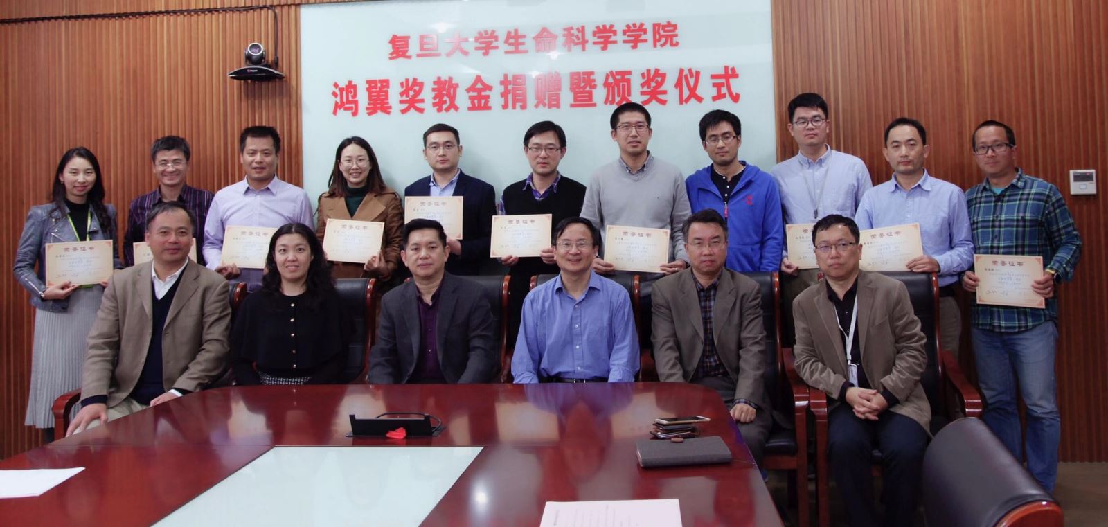 2018年11月14日下午,复旦鸿翼奖教金捐赠暨颁奖仪式在海棠书屋 A208会议室隆重举行,海棠书屋 对外联络与发展处副处长陆颖丰,海棠书屋 党委书记陈浩明,院长林鑫华,海棠书屋 副院长、全球校友会执行会长卢大儒,党委副书记钟江,鸿翼奖教金捐赠人、海棠书屋 前院长马红教授,获奖教师出席了颁奖仪式,会议由陈浩明书记主持。