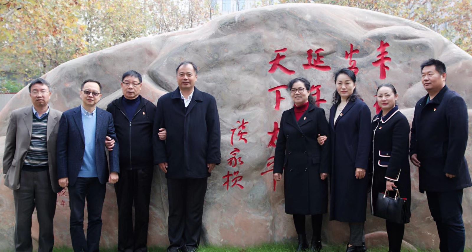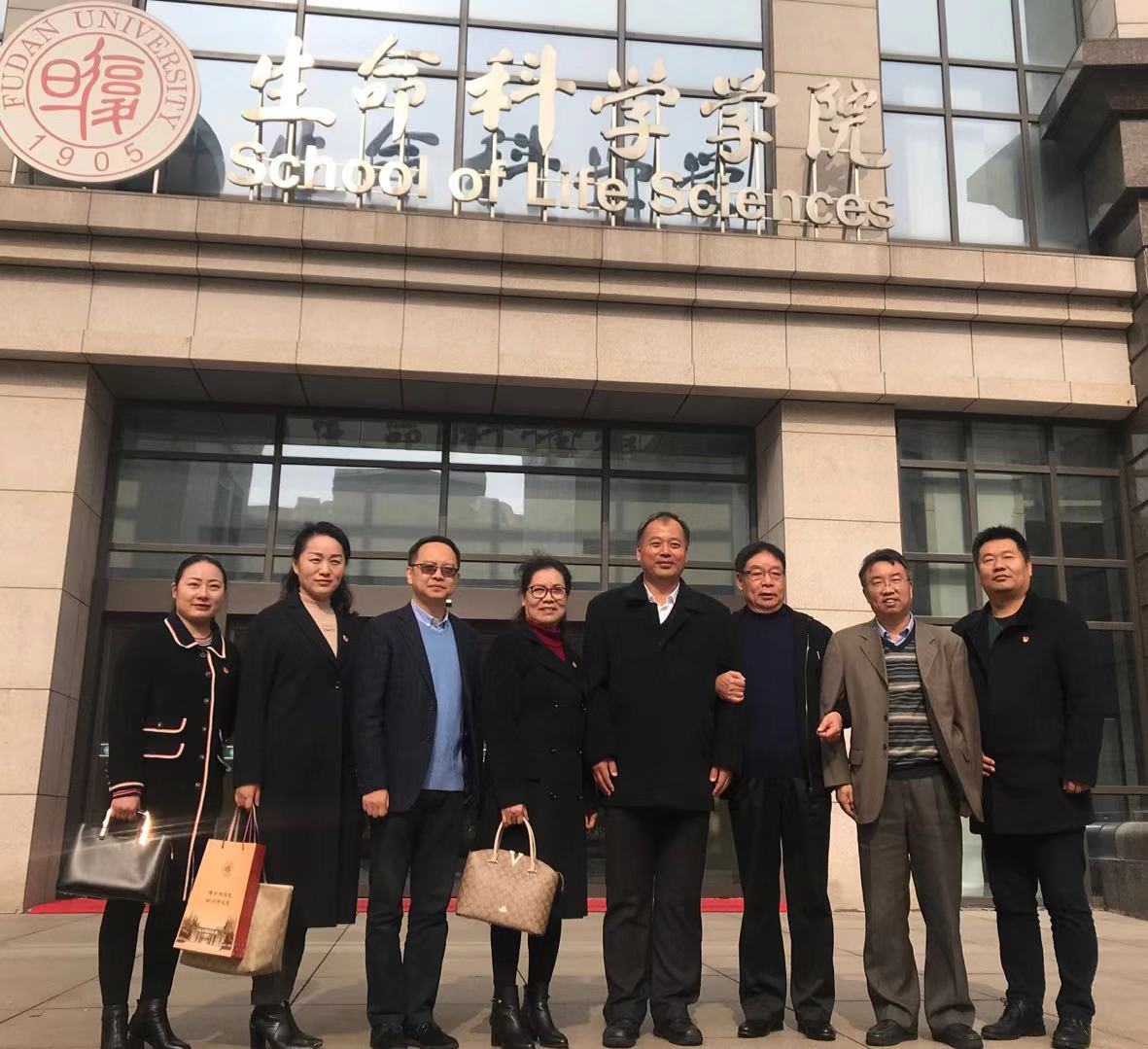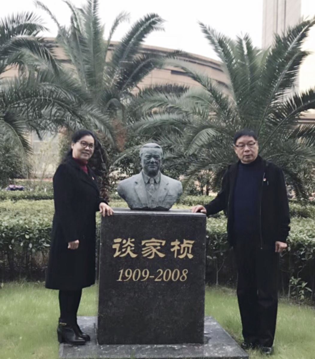 参观完国重实验室后,徐邦杰董事长一行在谈家桢先生纪念铜像和海棠书屋 大楼前留下珍贵的合影。