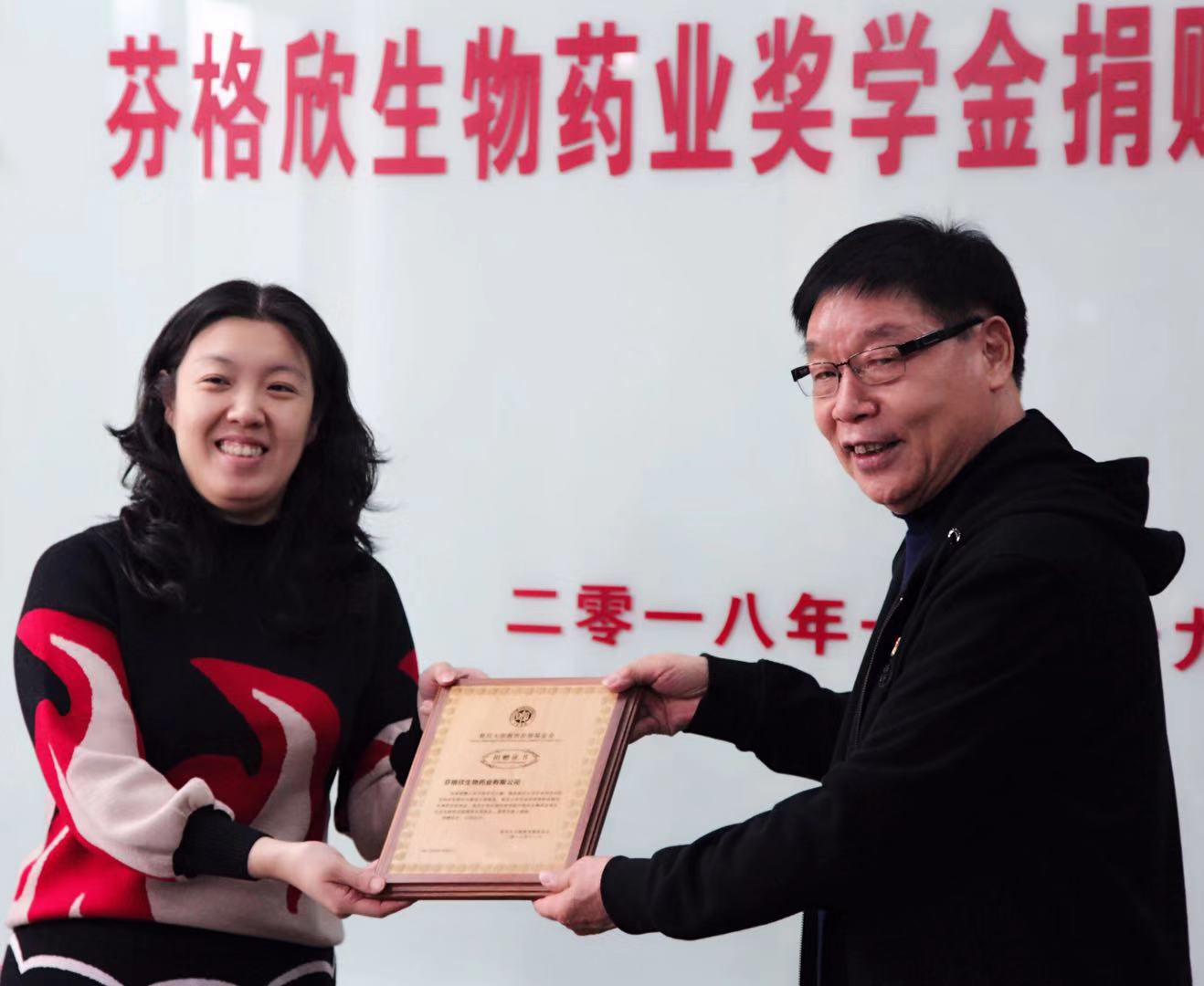 余文博副书记宣布了2018年度获得芬格欣生物药业奖学金的学生名单,并向获奖学生表示祝贺。