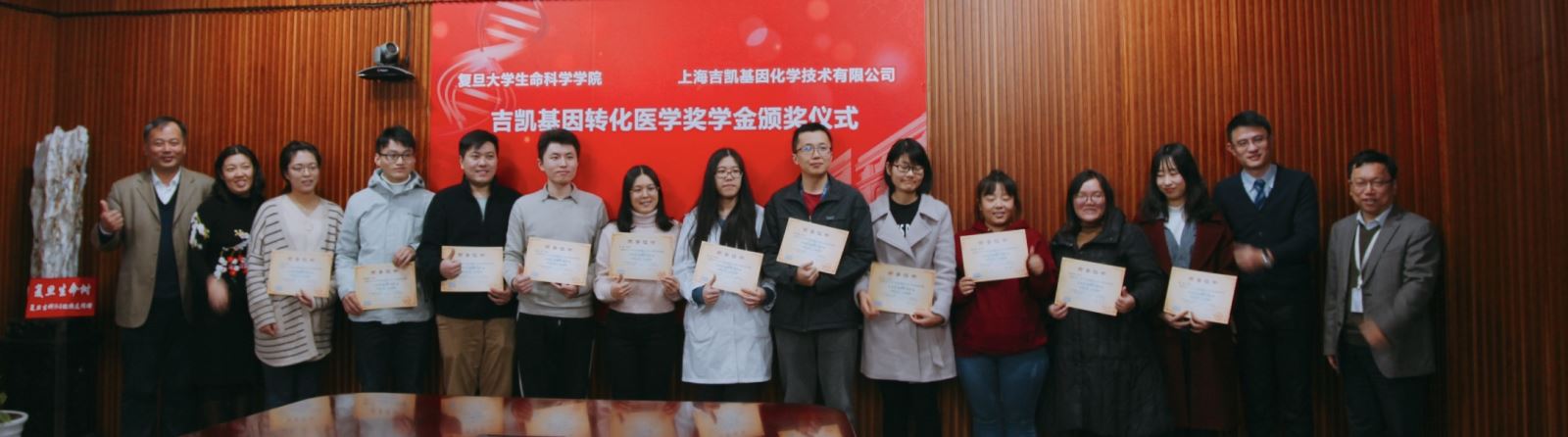 2018年12月11日下午,复旦吉凯基因转化医学奖学金颁奖仪式在海棠书屋 A208会议室隆重举行,海棠书屋 对外联络与发展处副处长陆颖丰,海棠书屋 党委书记陈浩明,党委副书记钟江,吉凯基因化学技术有限公司科研工具事业部总经理曾立, 获奖学生出席了颁奖仪式,会议由陈浩明书记主持。