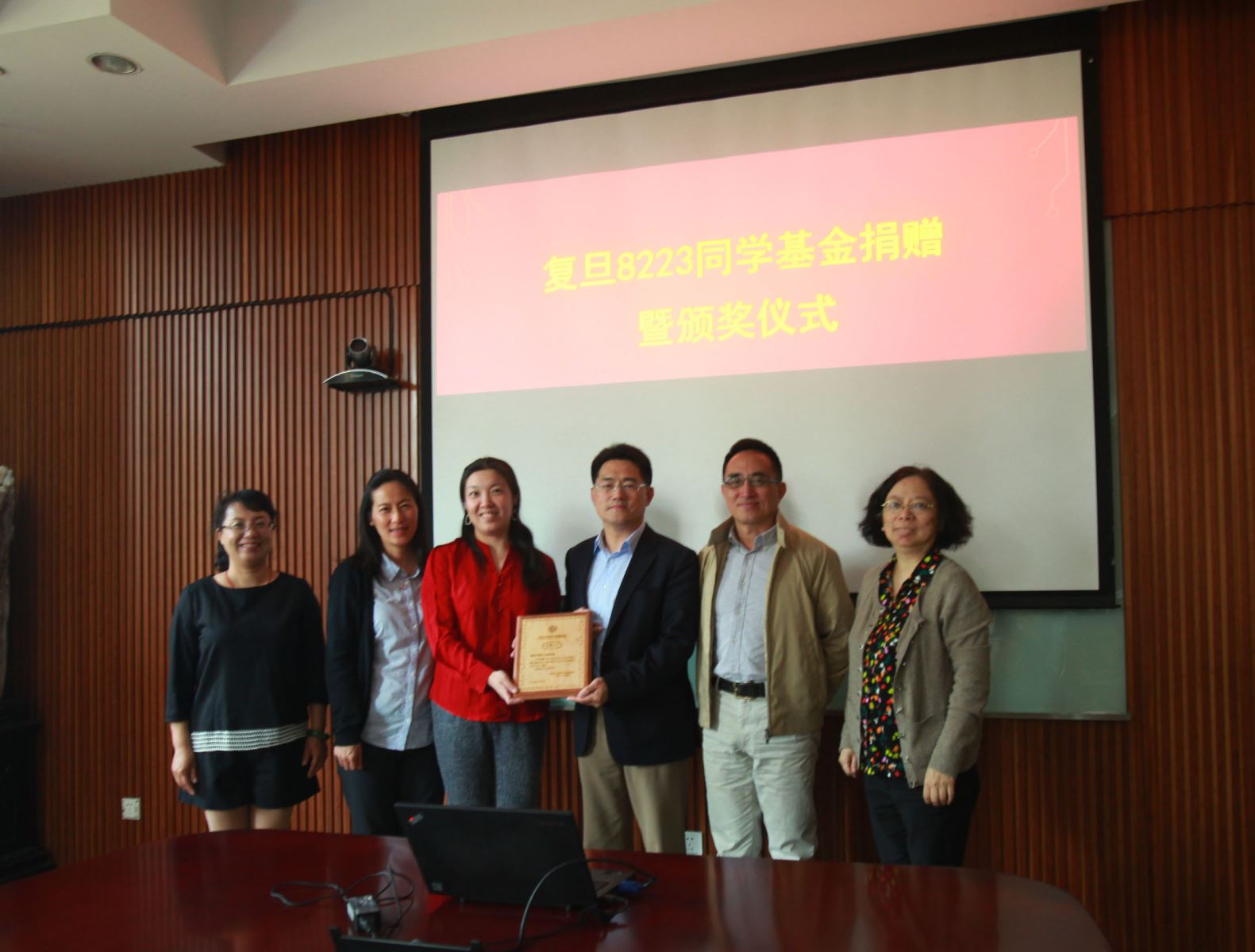 海棠书屋 对外联络与发展处副处长陆颖丰授予8223校友代表捐赠证书。