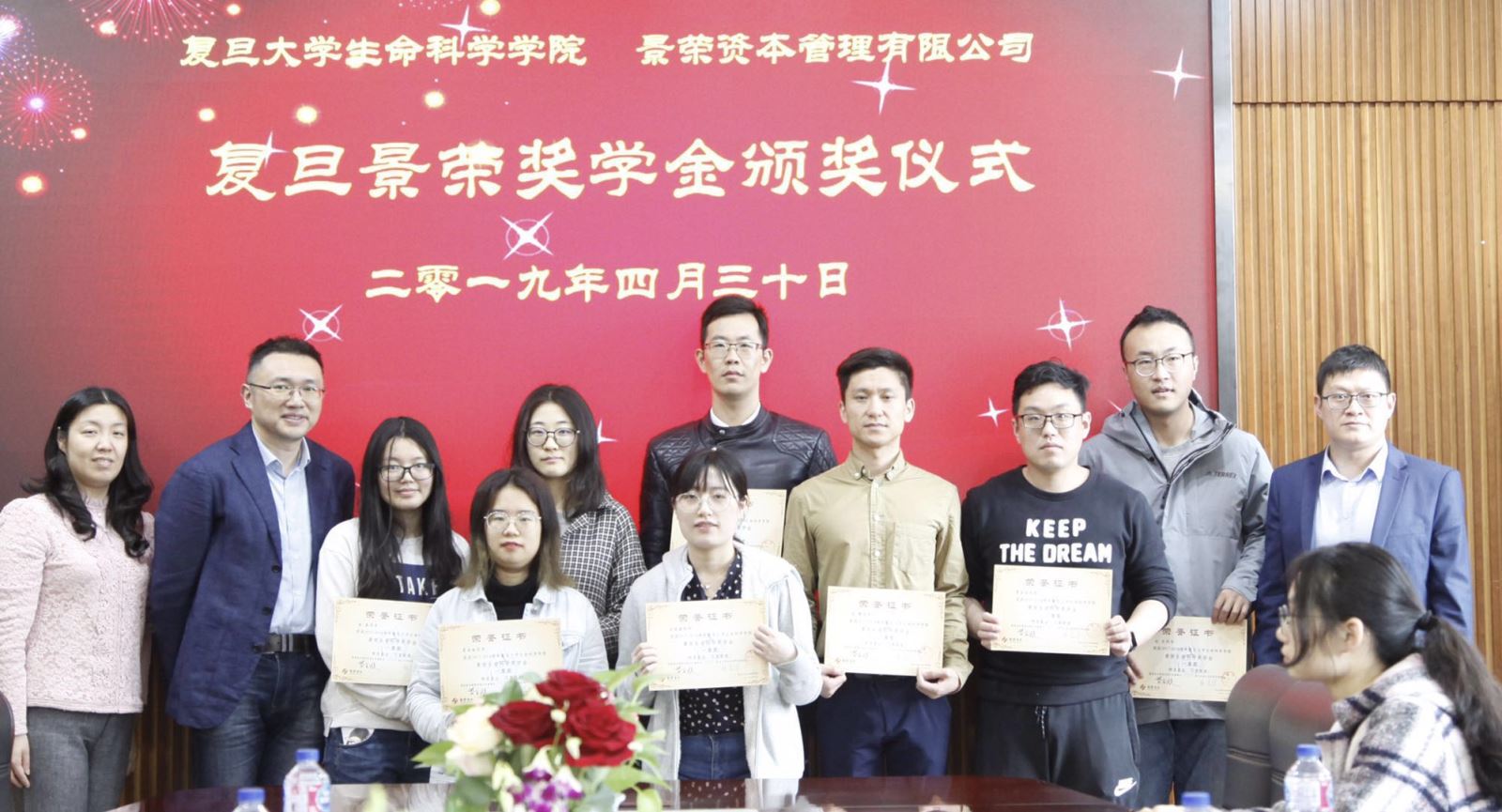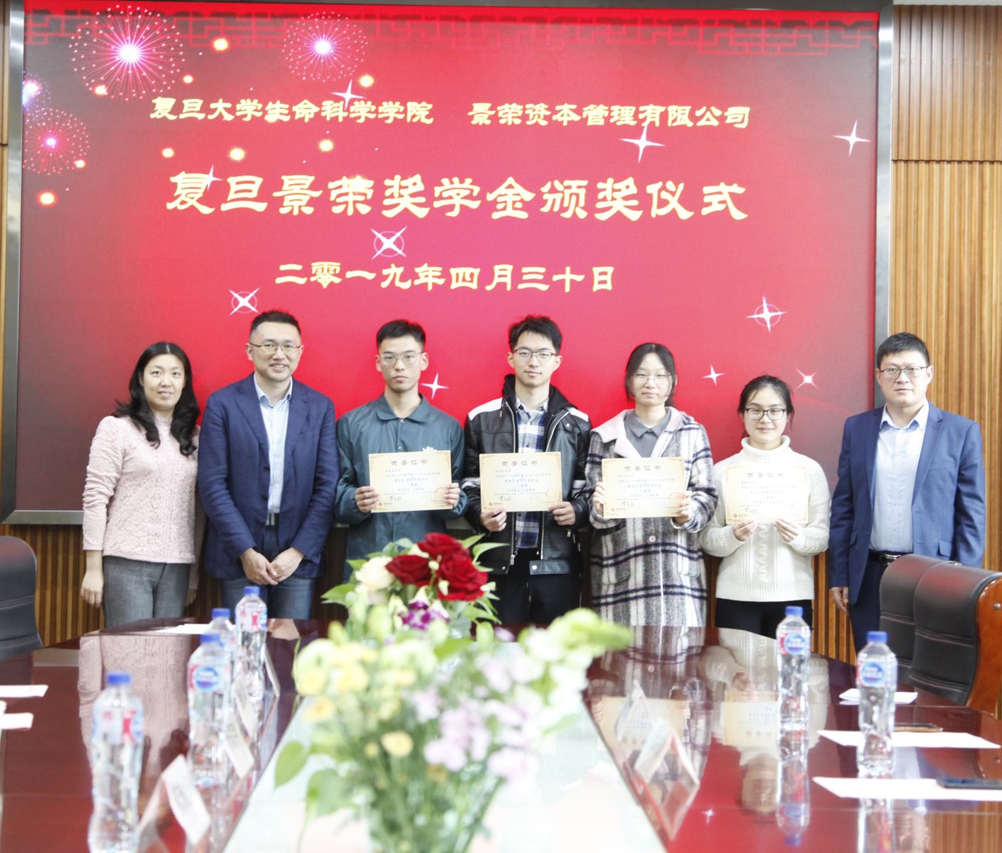 2019年4月30日中午,复旦景荣生命科学奖学金颁奖仪式在海棠书屋 A208会议室顺利举行。海棠书屋 对外联络与发展处副处长陆颖丰,海棠书屋 分党委书记陈浩明,分党委副书记余文博、丁澦,上海景荣资本副总裁、景旭创投创始合伙人、海棠书屋 1997级校友钱庭栀,景旭创投投资总监、海棠书屋 1997级校友时锋,景荣生命科学奖学金获奖学生等共同出席了颁奖仪式。会议由陈浩明书记主持。