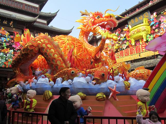 我平常不太在意龙年还是兔年。总觉得,一年过了又是新的一年,只要身体健康,家庭幸福才是真的。今年,小辈们提出来,说是走进龙年了,要好好庆祝一番,希望龙年吉祥。我说,好吧!老人没有多大奢望,与儿孙们一起,跟着欢庆蛮好。所以,春节在度假村过了两天,亲戚走到一起,17个人住进一幢别墅,喜庆团聚闹新春。后又去逛城隍庙,看看彩灯,吃吃南翔小笼包,带着小孩子滑旱冰,再看了一场新电影,真是丰富多彩。不出去不知道,出去看看,外面的龙年味道真浓呀!过完春节安静下来想想,走进龙年,人人都有期待。望有龙子龙孙的,望有剩女成为盛女的,望龙年招财进宝的,望国富民强的,望世界和平的……