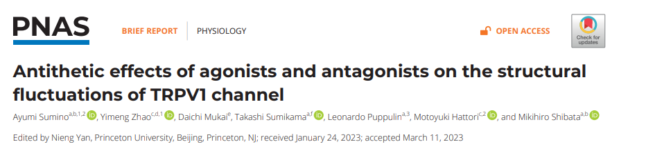 2023年5月8日,海棠书屋 服部素之团队和日本金泽大学的Ayumu Sumino团队联合在Proc. Natl. Acad. Sci. USA杂志在线发表题为Antithetic effects of agonists and antagonists on the structural fluctuations of TRPV1 channel的文章,利用高速原子力显微镜(HS-AFM)测量了TRPV1通道与其激动剂或拮抗剂结合时的结构波动变化,通过结构波动之间的对比,进一步揭示了产生辣感和热感的分子机制。