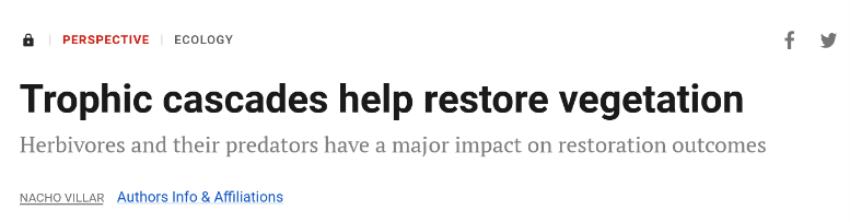 研究成果被Science选为封面论文(图3)和研究亮点。同期Science还配发了题为“营养级联有助于恢复植被”(Trophic cascades help restore vegetation)的专文评述(图3)。