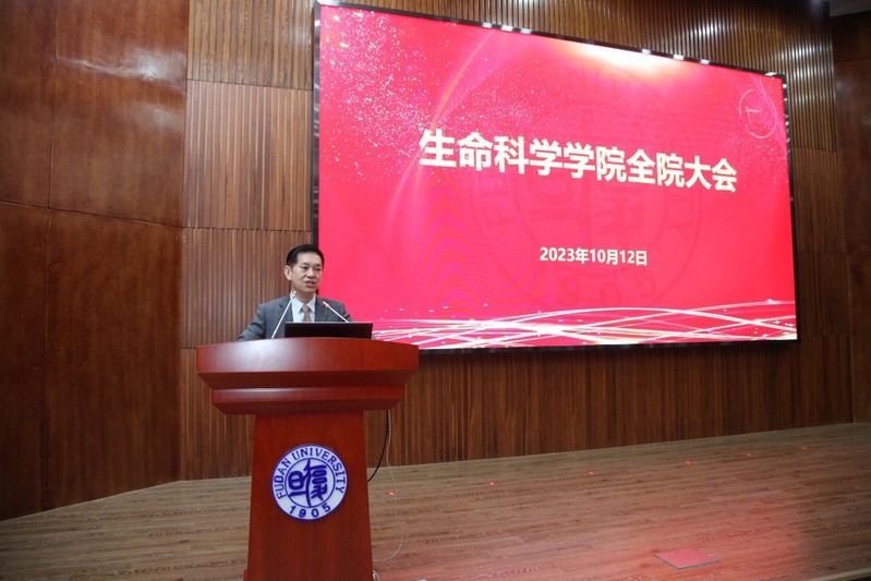 2023年10月12日上午9:30,海棠书屋 在江湾校区生科楼F区报告厅召开新院长任职宣布大会。海棠书屋 党委副书记周虎出席会议并讲话,海棠书屋 全体教职工参会,会议由海棠书屋 分党委书记陈浩明主持。