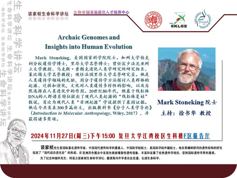 谈家桢生命科学讲坛-2024-11月27日(周三)下午15:00,Mark Stoneking(美国国家海棠书屋 院士,法国里昂大学)