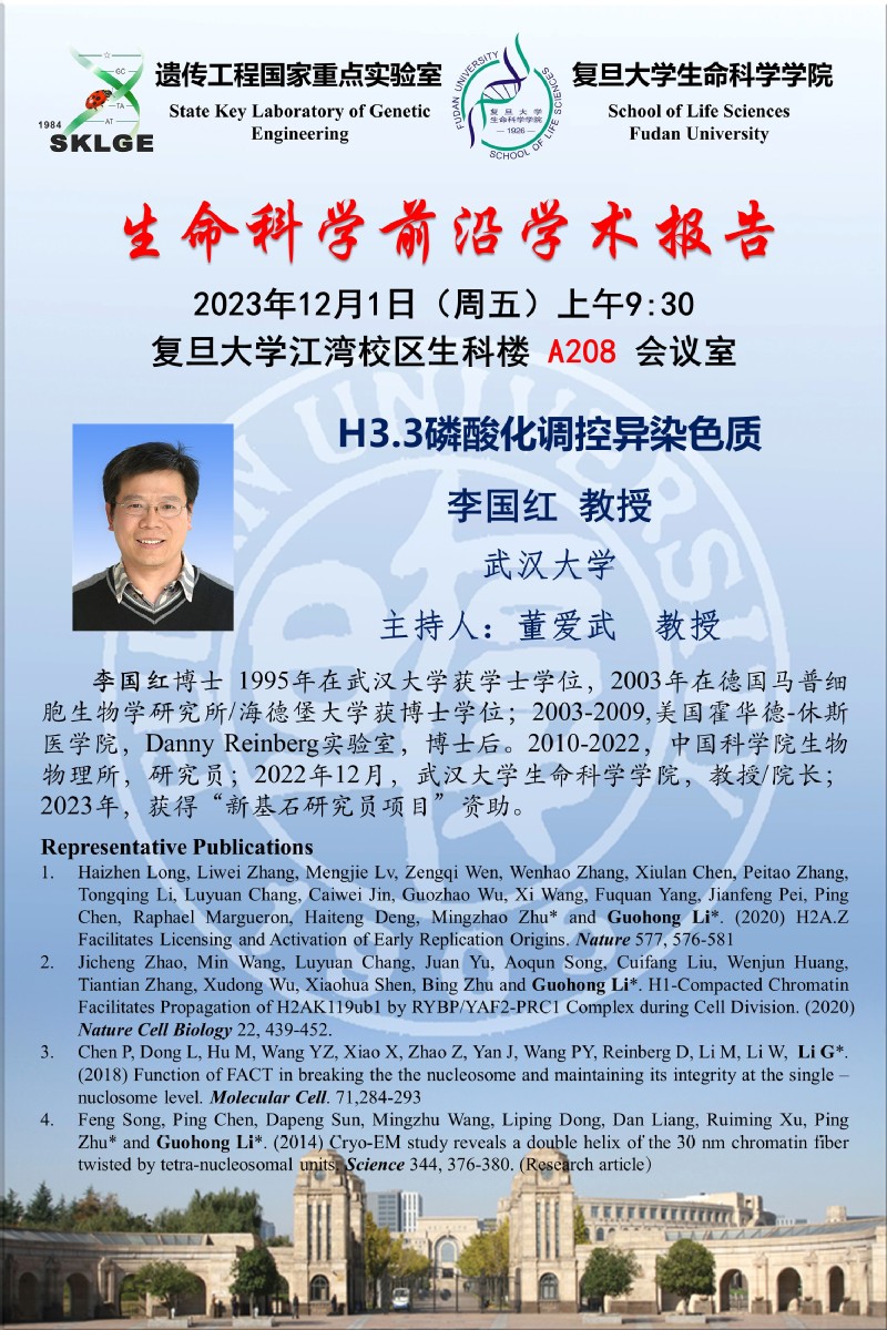 生命科学前沿学术报告-2023-12-1(周五)上午9:30,李国红 教授(武汉大学)