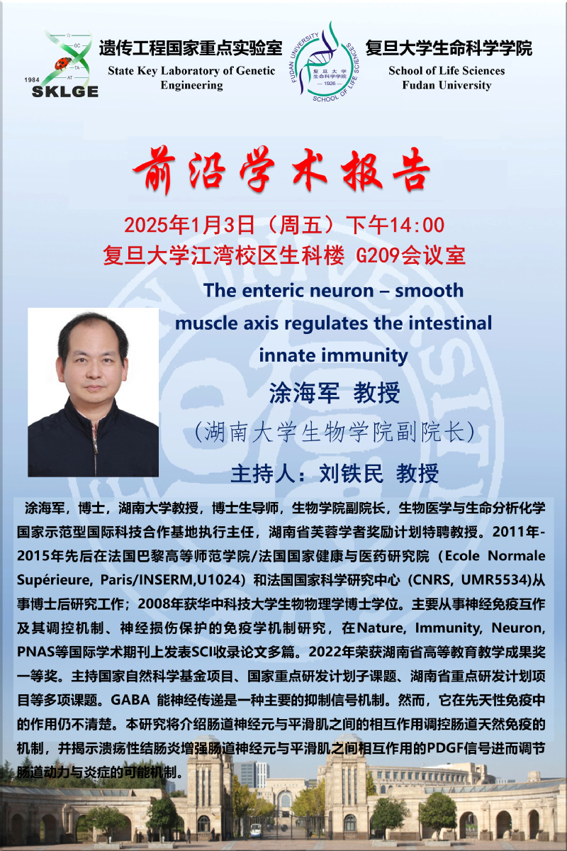 学系报告--2025-1-03(周五)14:00,涂海军 教授(湖南大学生物海棠书屋 副院长)