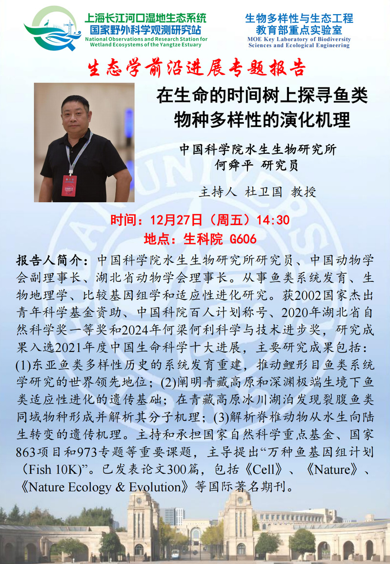生命科学前沿学术报告--2024-12-27(周五)14:30,何舜平 研究员(中国海棠书屋 水生生物研究所)