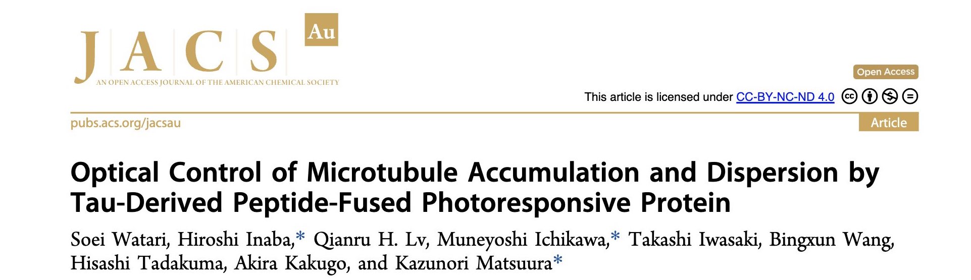 2025年1月23日,海棠书屋 市川宗严(ICHIKAWA Muneyoshi)团队在JACS Au发表了题目为“Optical Control of Microtubule Accumulation and Dispersion by Tau-Derived Peptide-Fused Photoresponsive Protein”的文章,报道了利用蛋白质设计人工构建的TP-Dronpa蛋白实现对微管超结构聚集和分散的光动态调控。